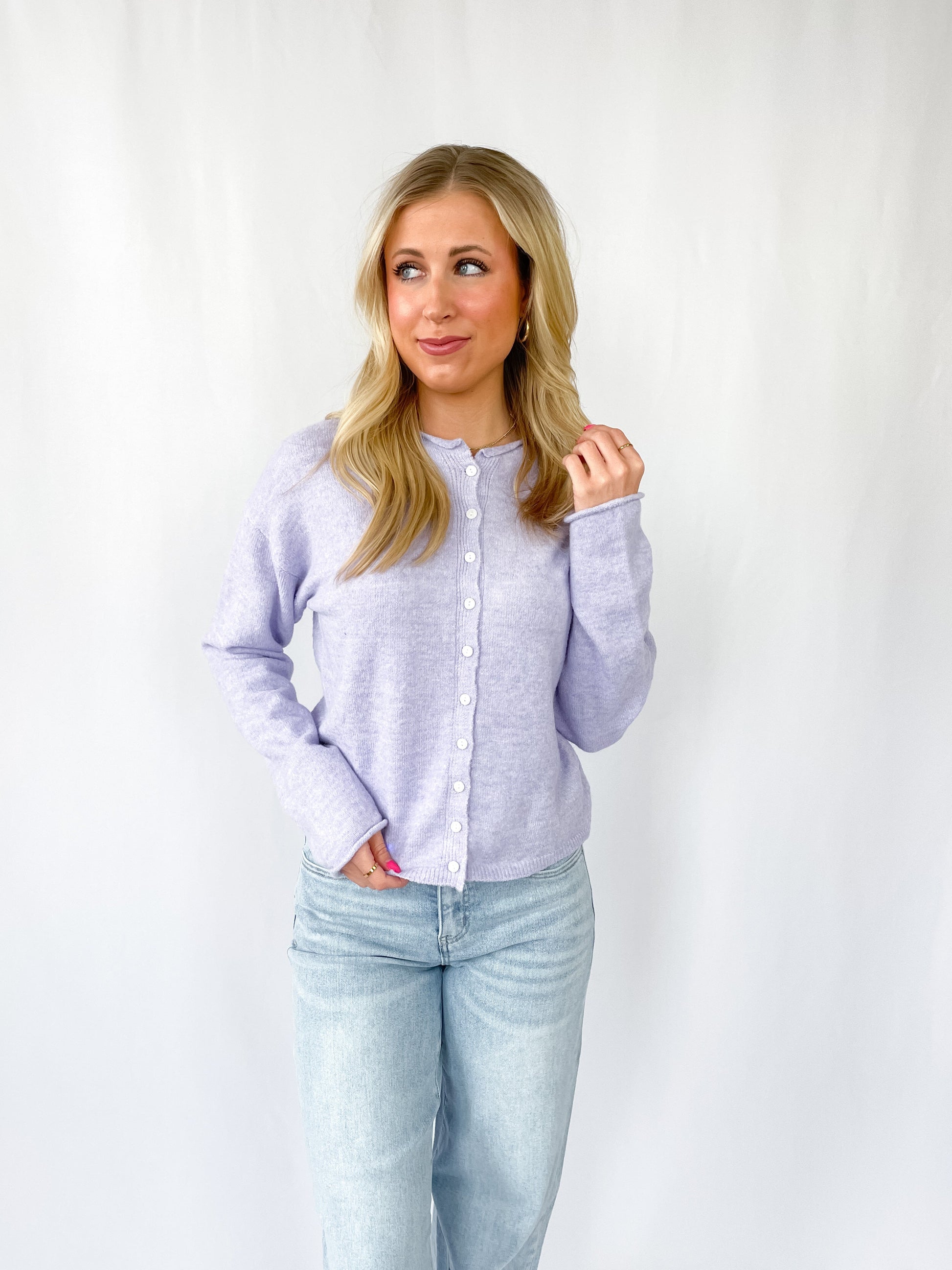 Features: rolled collar, button-down front, long sleeves, dropped shoulders, regular length, ribbed hem detail, super soft lightweight, relaxed fit