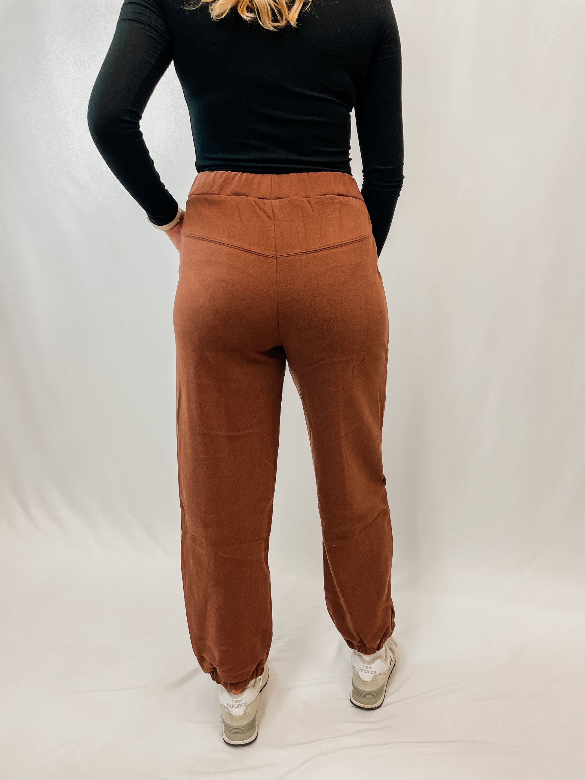 Features: relaxed fit jogger, distinct seam detail, elastic waistband