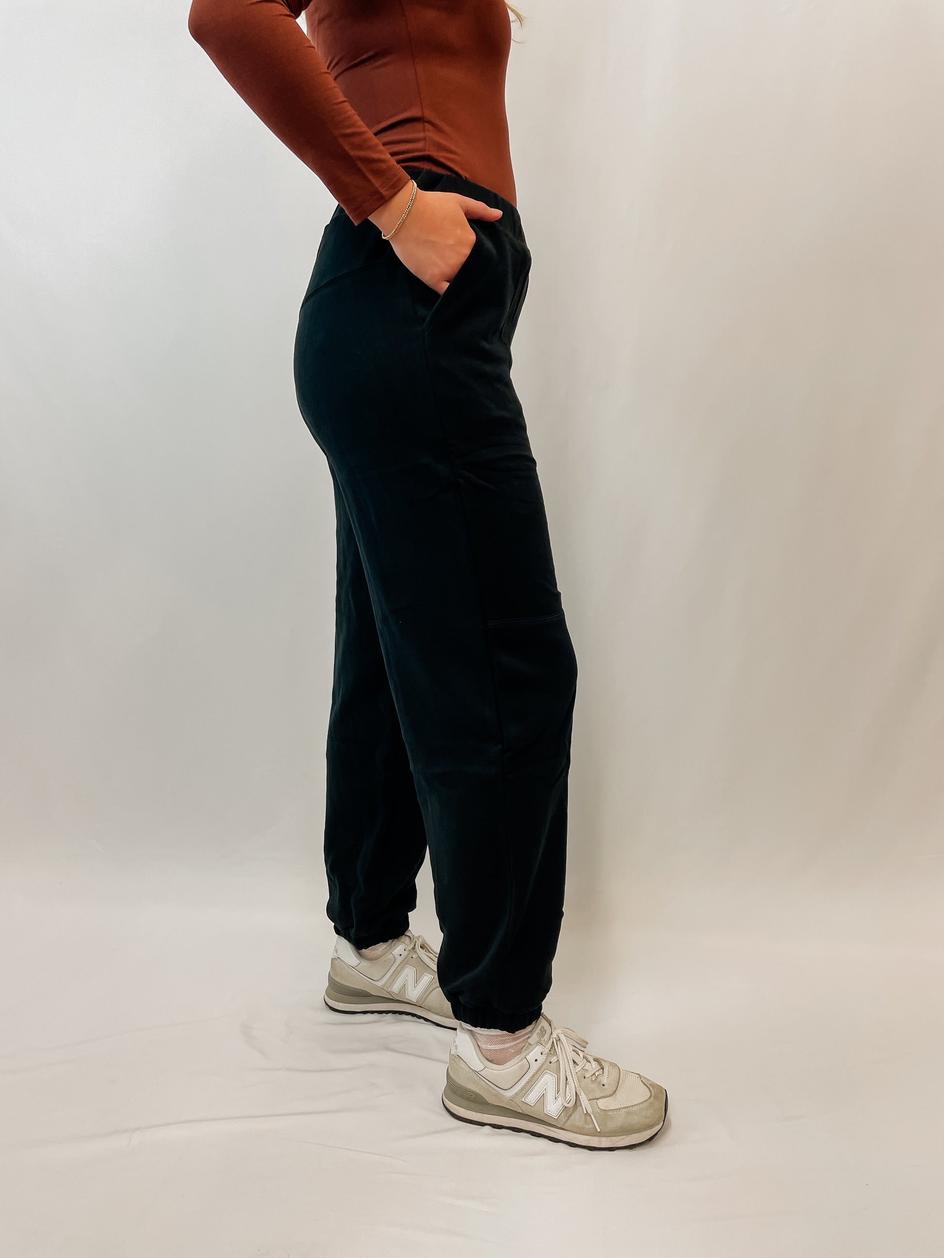 Features: relaxed fit jogger, distinct seam detail, elastic waistband